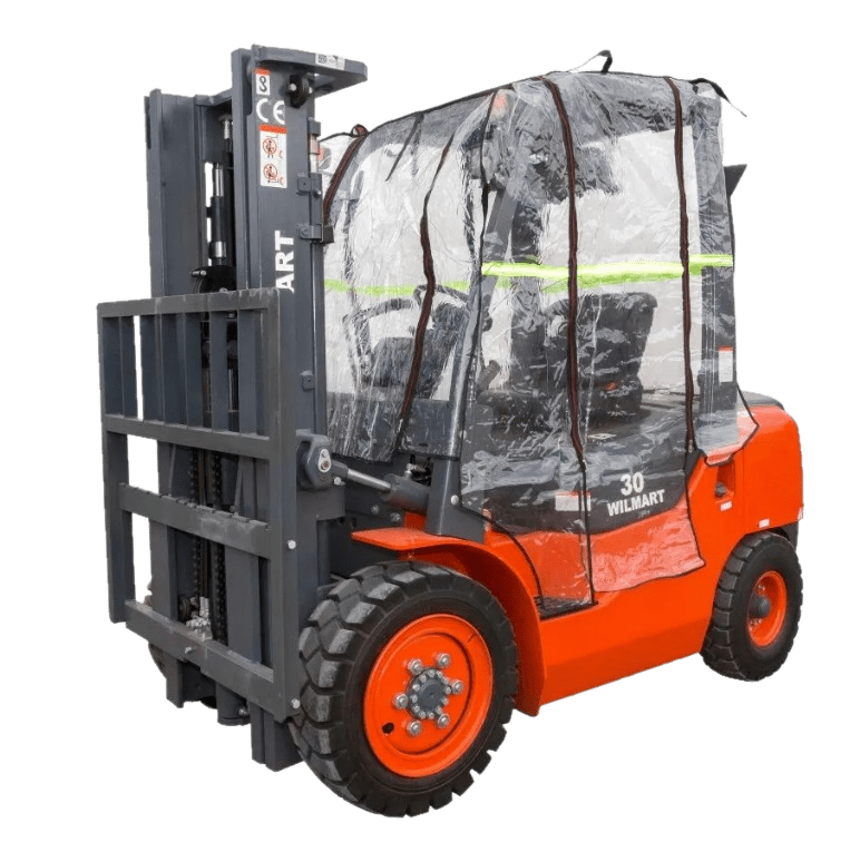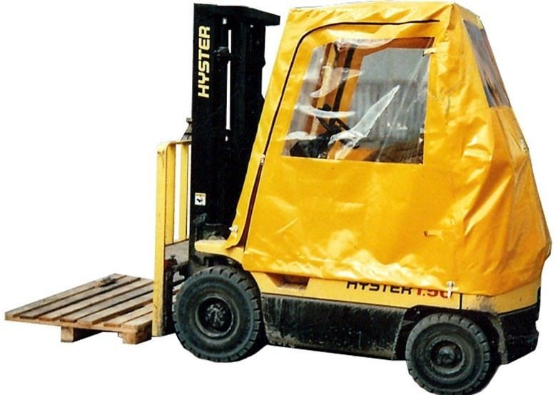 Тенты для складской техники производятся из прочного износостойкого материала, рассчитанного на длительную интенсивную эксплуатацию. Чехол легко надевается на кабину погрузчика и снимается без использования специального инструмента.